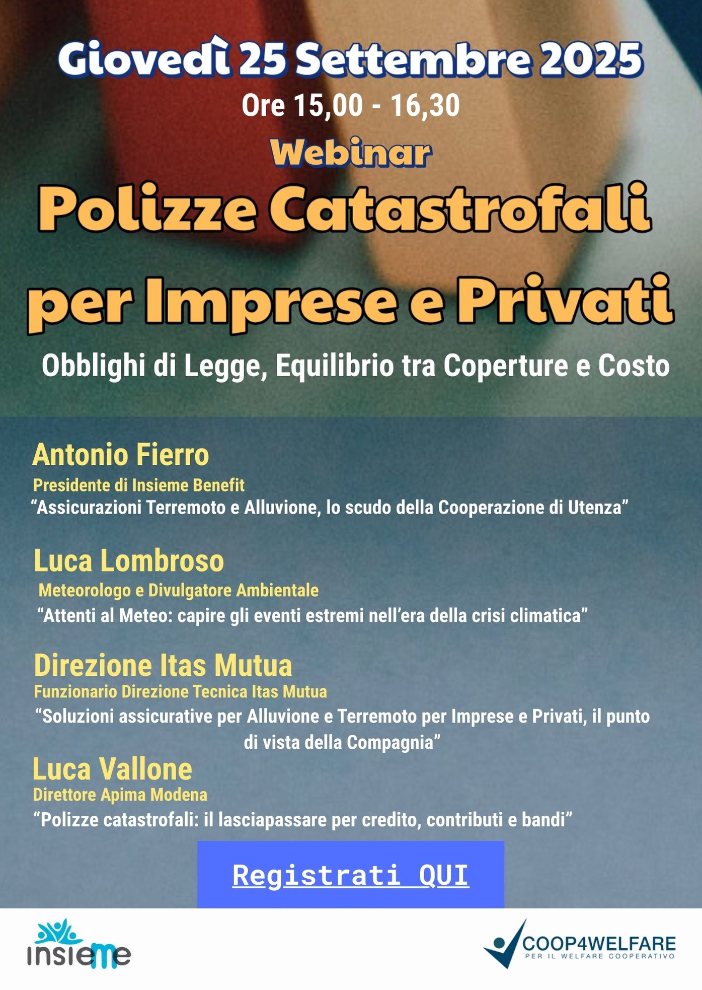 LINK Webinar Polizze catastrofali per Imprese e Privati del 25 Settembre ore 15.00-16.30
